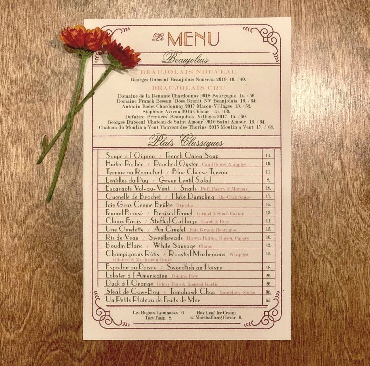 This past holiday season, I was planning a trip back to Michigan to visit family. I happened upon a post from Voyager, proclaiming that it would be offering a special dinner entitled “Bad and Beaujolais” in honor of the release of the yearly batch of Beaujolais. The experience promised to be a playful fusion of New England and French cuisine, with plenty of Beaujolais to go around.