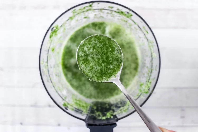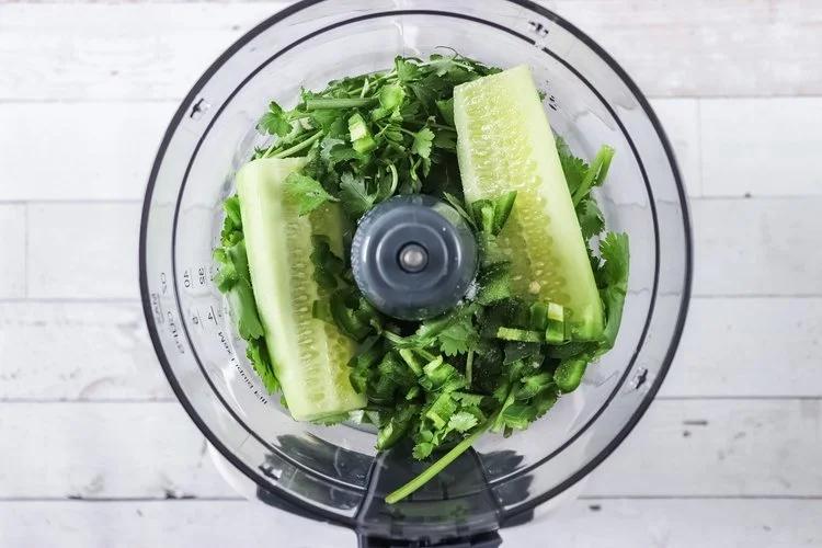 - Make the Aguachile Marinade: Place the ingredients in a food processor, and blend until smooth, for a full minute, scraping down the sides as necessary.